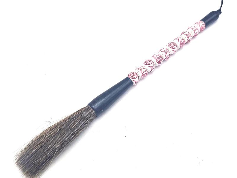 - Ces petits pinceaux décoratifs de 24 à 26 cm sont conçus exclusivement comme objets d’art. Le manche, en pierre ou en porcelaine fine, est poli et peint à la main selon des motifs traditionnels chinois ou des créations contemporaines, offrant un équilibre parfait entre couleur et texture.