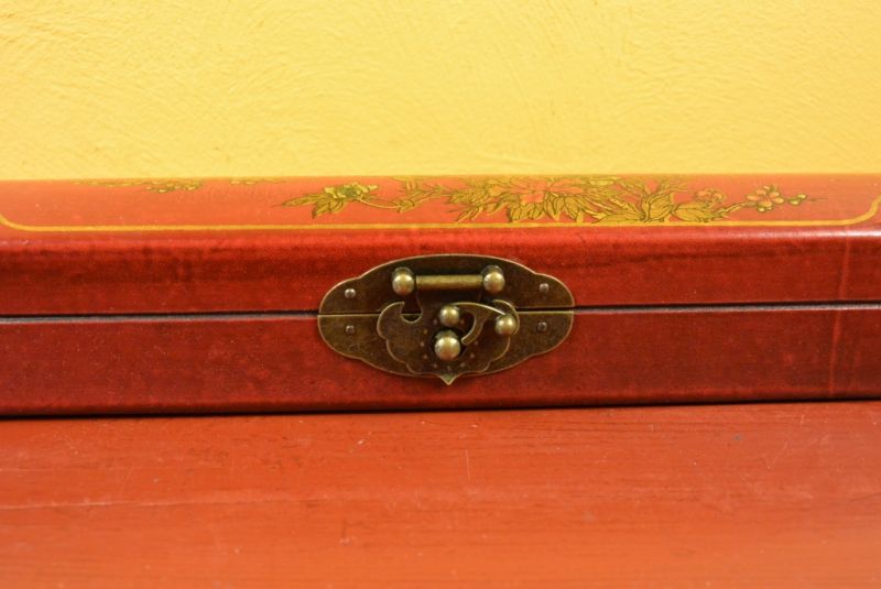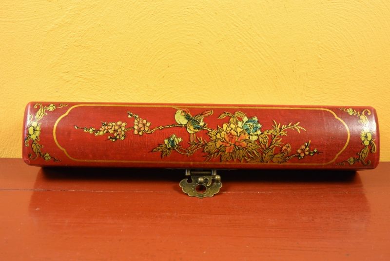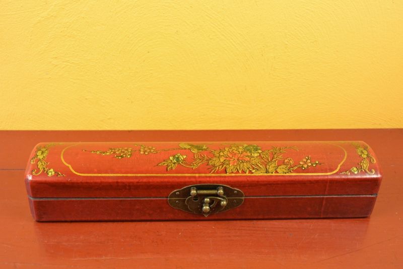 Petite Boite Chinoise en Bois longue - Rouge / Oiseaux