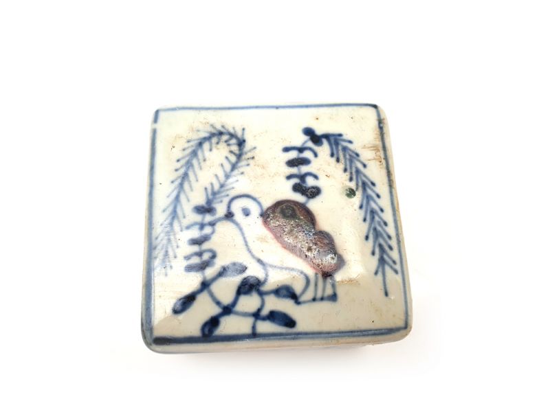 Petite boîte chinoise en porcelaine - Carré - Oiseau