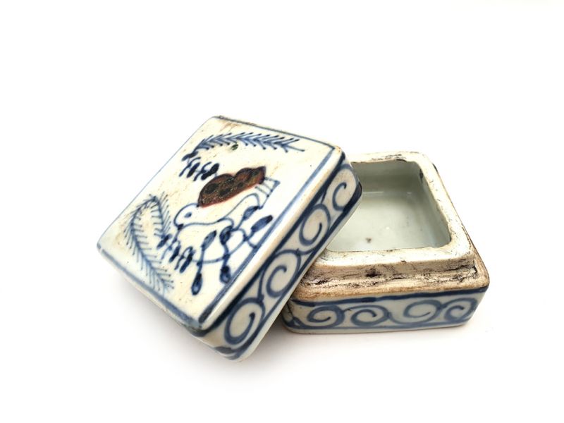 — Cette boîte chinois est en porcelaine peinte à la main et présente un décor singulier composé de motifs chinois. La vaisselle traditionnelle en porcelaine chinoise est unique au monde, elle se distingue par la richesse de ses décors et par ses couleurs. Ils s'agit d'une reproduction entièrement realisée à la main par un artisan chinois de la province du Guangdong.
