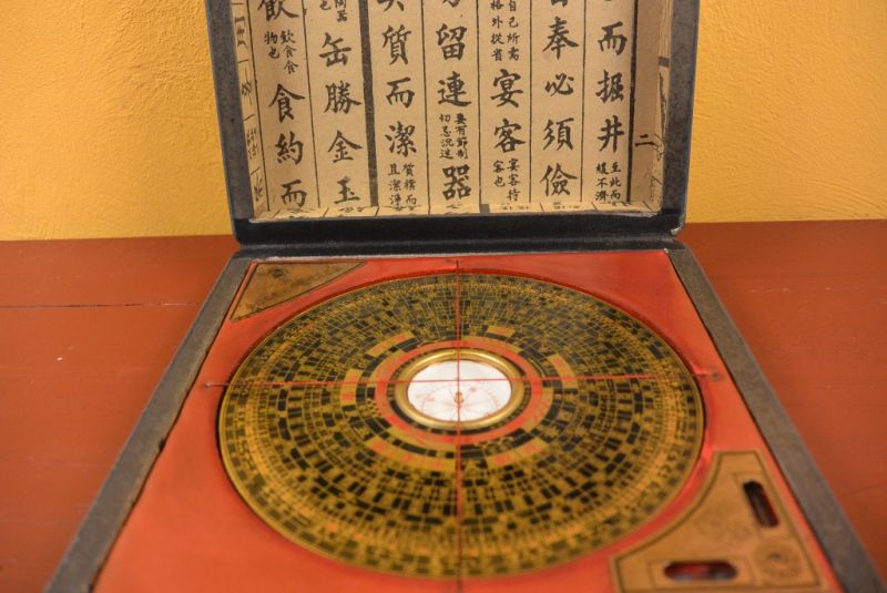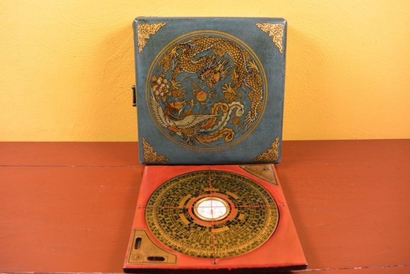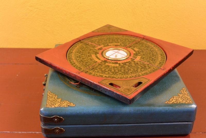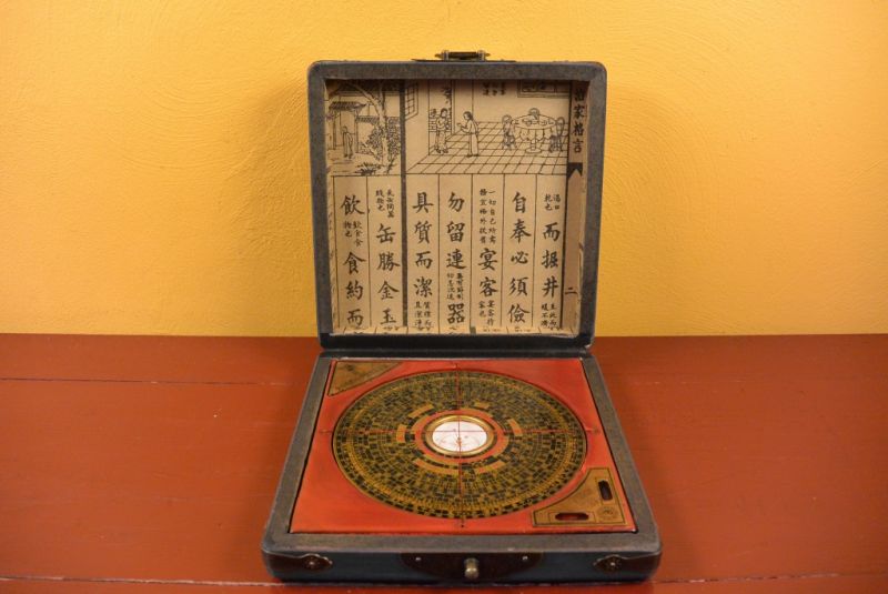 - Il s’agit ici d’une boussole chinoise (classique) appelée Luopan, en plus l’aiguille magnétique elle est pourvue de cercles concentriques qui la transforme en véritable règle à calcul.
