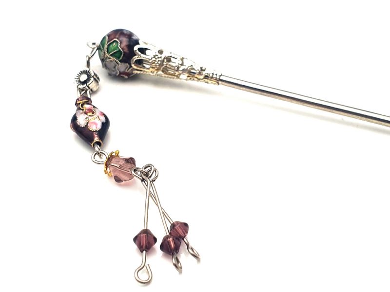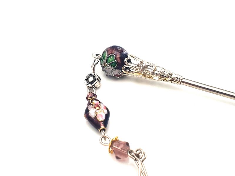 Pic à cheveux en métal et cloisonné - Violet