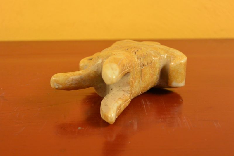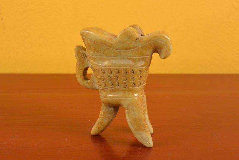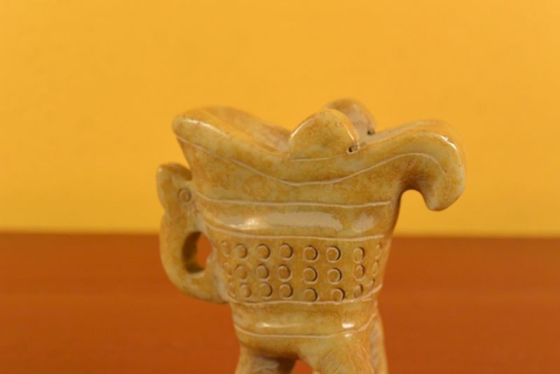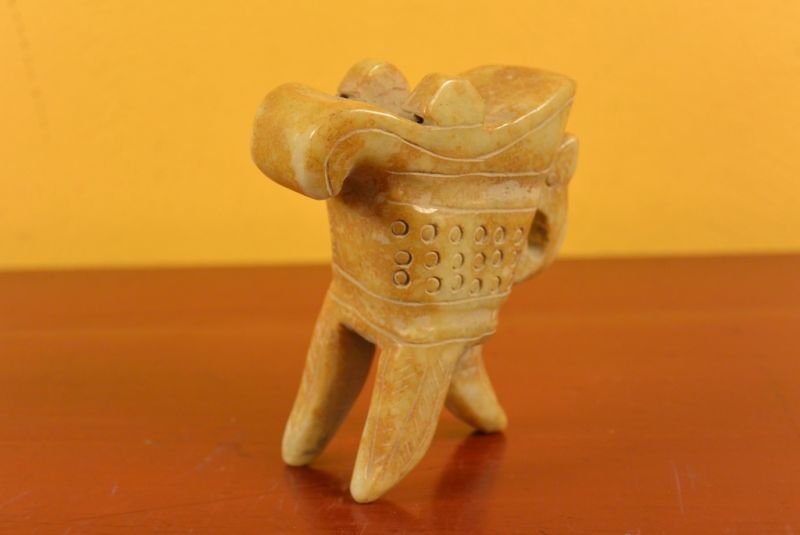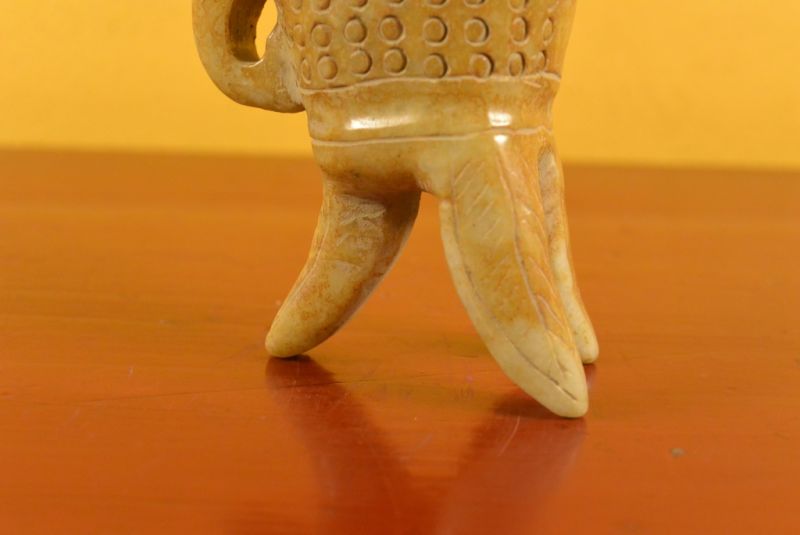 - La pierre dans laquelle cet objet sculpté est appelée pierre naturelle de Lushan, également appelée en Asie "jade de montagne". Il ne s’agit, en réalité, pas de jade néphrite ou jadéite mais d’une pierre de marbre dolomitique opaque qui, néanmoins, a l’apparence de jade de type néphrite. Cette pierre est richement composée de calcium et de magnésium.