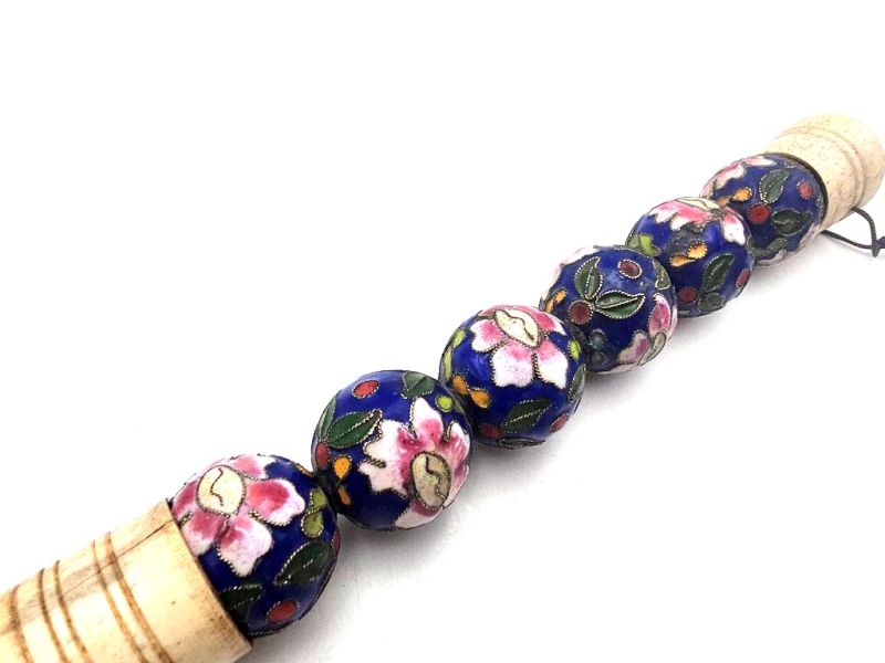 Pinceau cloisonné à perles bleu roi, orné de fleurs roses