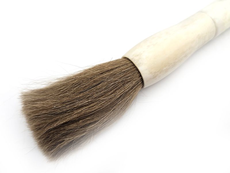 — Grand pinceau chinois pour la calligraphie composé d’un manche en pierre ou en porcelaine. Les pinceaux chinois destinés à la calligraphie sont réalisés par des artisans et certaines pièces sont considérées comme des œuvres artistiques. En Chine, la calligraphie est le fondement de l’art et se distingue par son originalité, sa richesse et sa beauté visuelle. Cet art consiste à former des caractères d’écriture chinoise et se situe au sommet de la hiérarchie artistique en Chine.