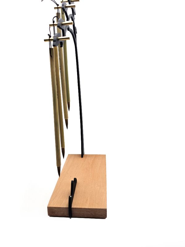 Ils sont fabriqués en bois massifs et en métal fin, ce qui leur assure une grande solidité et une grande longévité. Les crochets de cet objet permettent aux calligraphes d’accrocher leurs pinceaux pour les faire sécher, les poils vers le bas, afin que ceux-ci puissent conserver leur forme originelle. Ces porte-pinceaux sont de taille standard et se fondent parfaitement dans les décorations de style asiatique.
