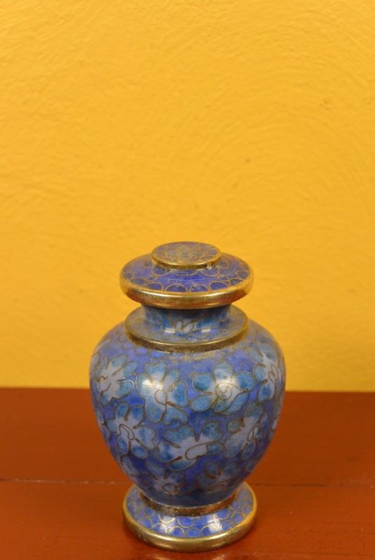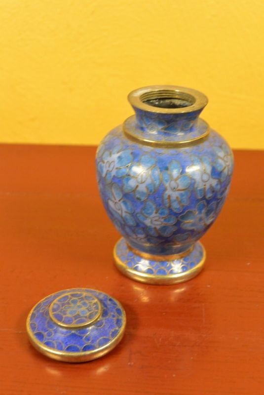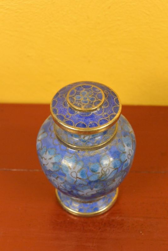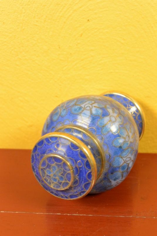 Potiche ou Vase en Cloisonnée - Bleu / Fleurs