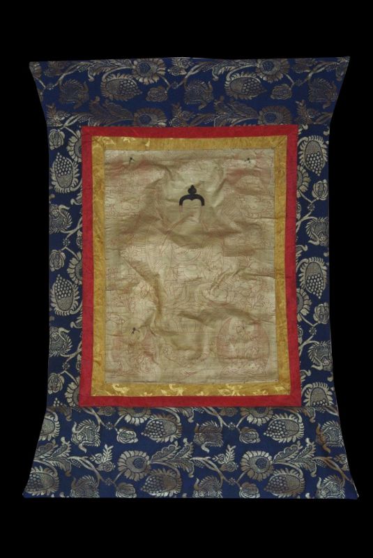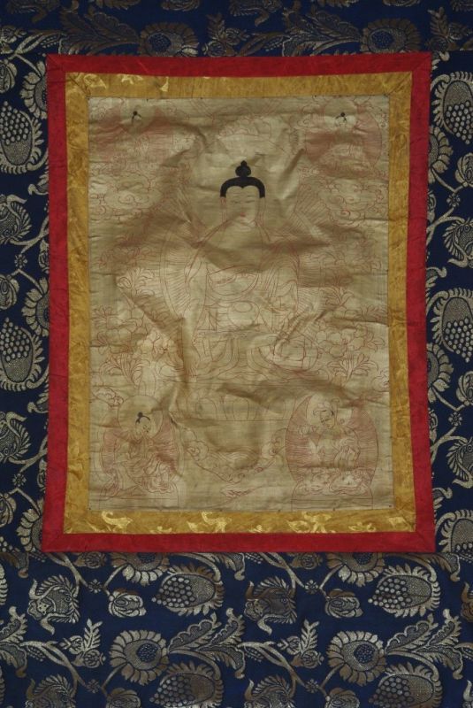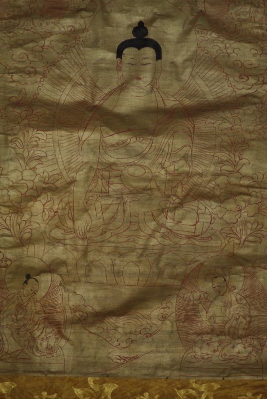 - Ce Thangka est peint sur un brocart, il a pour sujet la vie de Bouddha.