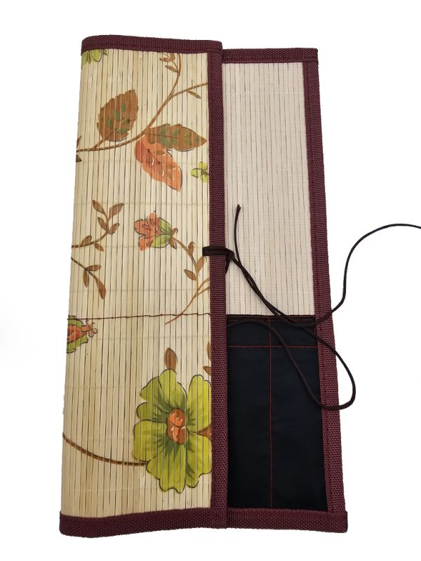 - Grande trousse idéal pour le transport des pinceaux. 29cm de large par 34cm de hauteur. Cette trousse est réalisée de bambou et de tissus.