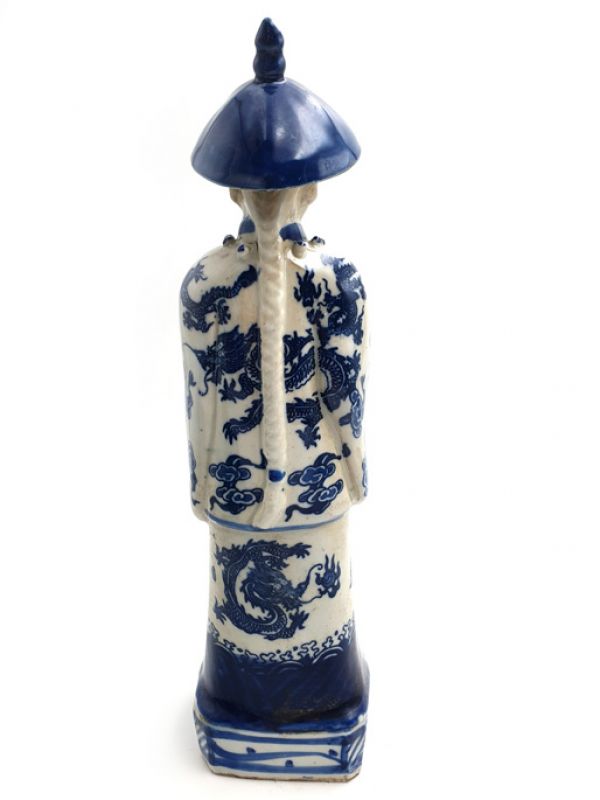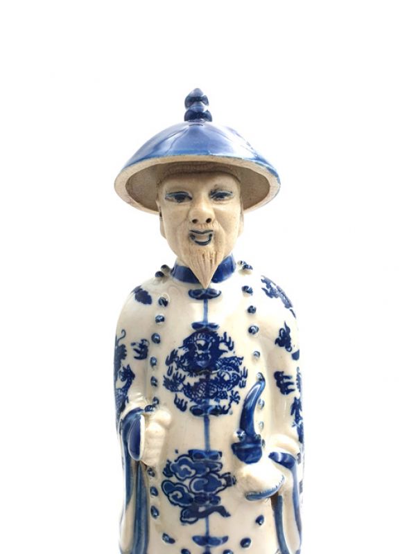Vieux mandarin Chinois bleu et blanc en porcelaine